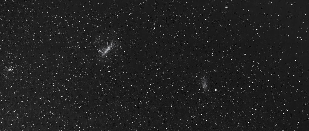 When I returned to my room later, I opened the memory card on my camera and began scrolling through the images. Most of them were what I had expected. Then one photograph caught me by surprise. I zoomed in, hardly daring to believe it. There they were, two soft patches of light floating in the blackness. I had captured the Magellanic Clouds, those elusive companions of the Milky Way, visible only in the southern sky. My heart leapt, and a wave of joy rushed through me. I had not gone seeking the Magellanic Clouds, yet there they were, recorded forever in my photograph.